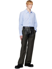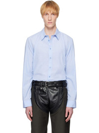 Lightweight cotton poplin shirt. Stripes throughout. · Spread collar · Button closure · Logo patch at placket · Shirttail hem · Single-button barrel cuffs · Box pleat at back yoke Supplier color: Blue/White 100% cotton. Made in Portugal 251892M192007
