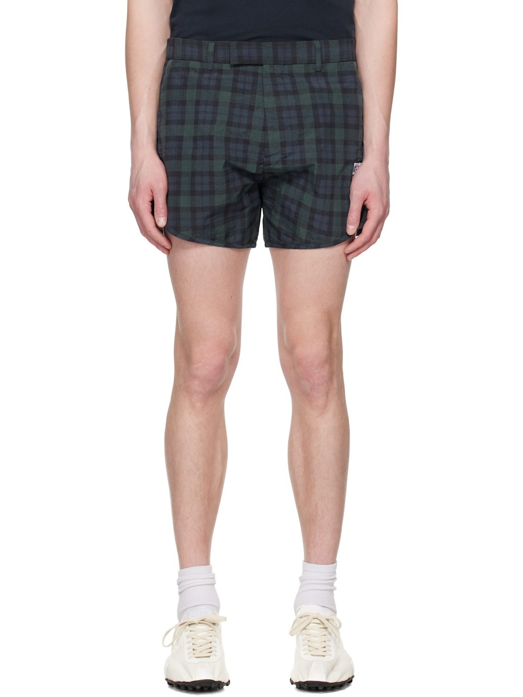 Nylon taffeta shorts. Check pattern throughout. · Belt loops at partially elasticized waistband · Three-pocket styling · Zip fly · Logo patch at front · Vented cuffs Supplier color: Black Body: 100% polyamide. Lining: 100% cotton. Made in Italy 251892M193007