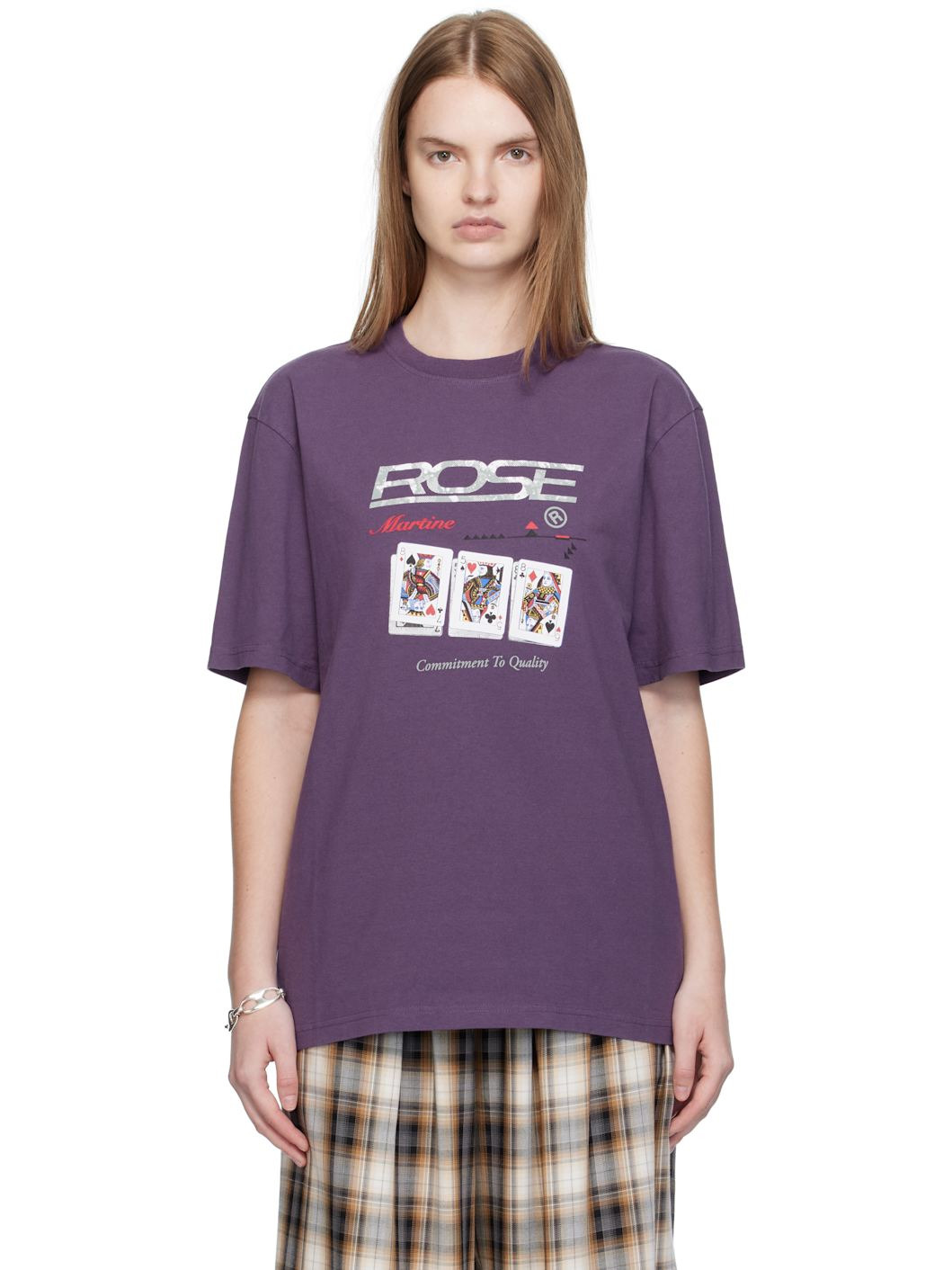 Cotton jersey T-shirt. · Rib-knit crewneck · Logo, graphic, and text printed at front Supplier color: Purple wine playing cards 100% cotton. Made in Portugal 252892F110004