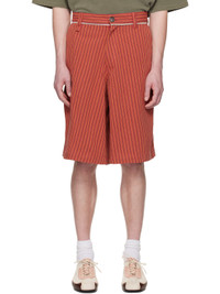 Wide-leg cotton canvas shorts. Stripes throughout. · Belt loops and text-woven trim at waistband · Four-pocket styling · Zip fly · Logo embroidered at front · Modified gusset at inseams · Logo patch at outseams · Welt pocket at outseam · Hammer loop and eyelets at outseam Supplier color: Red/Yellow stripe 100% cotton. Made in Bulgaria 251892M193002