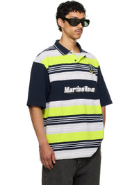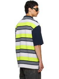 Oversized cotton pique polo. Stripes throughout. · Rib-knit spread collar · Two-button placket · Logo embroidered at chest and hem · Logo printed at front · Tennis-tail hem · Dropped shoulders Part of the exclusive SSENSE HEAT capsule. Supplier color: Blue/Navy/Lime 100% cotton. Made in Portugal 252892M212001