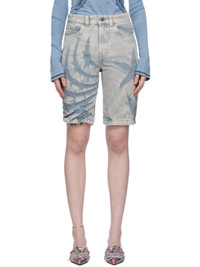 Non-stretch denim shorts. Fading, subtle distressing, and creasing throughout. · Belt loops · Five-pocket styling · Zip-fly Available exclusively at SSENSE. Supplier color: Ghostly blue 76% cotton, 24% recycled cotton. Made in United Kingdom 241936F088000