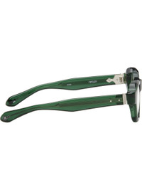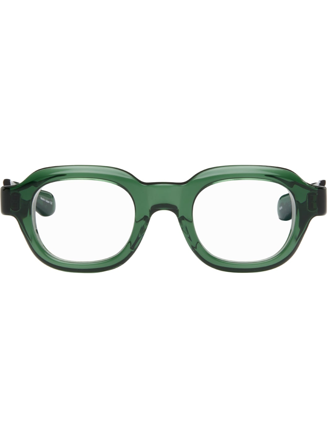Handcrafted semi-transparent acetate-frame optical glasses in green. · Integrated nose pads · Filigree detailing at exposed core wires · Silver-tone hardware · Includes case · Size: 47.25 145 Supplier color: Bottle green Acetate. Made in Japan 252167M133020