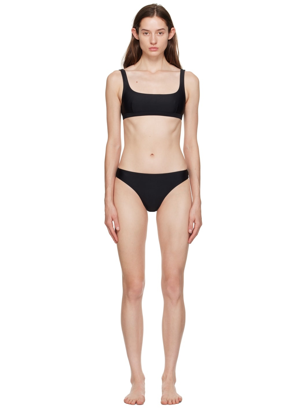 Stretch nylon jersey bikini top. · Square neck · Fixed shoulder straps · Hook-eye fastening at back · Full stretch jersey lining Stretch nylon jersey bikini bottom. · High-cut · Full stretch jersey lining Supplier color: Black 80% nylon, 20% elastane. Made in Australia 241946F105003