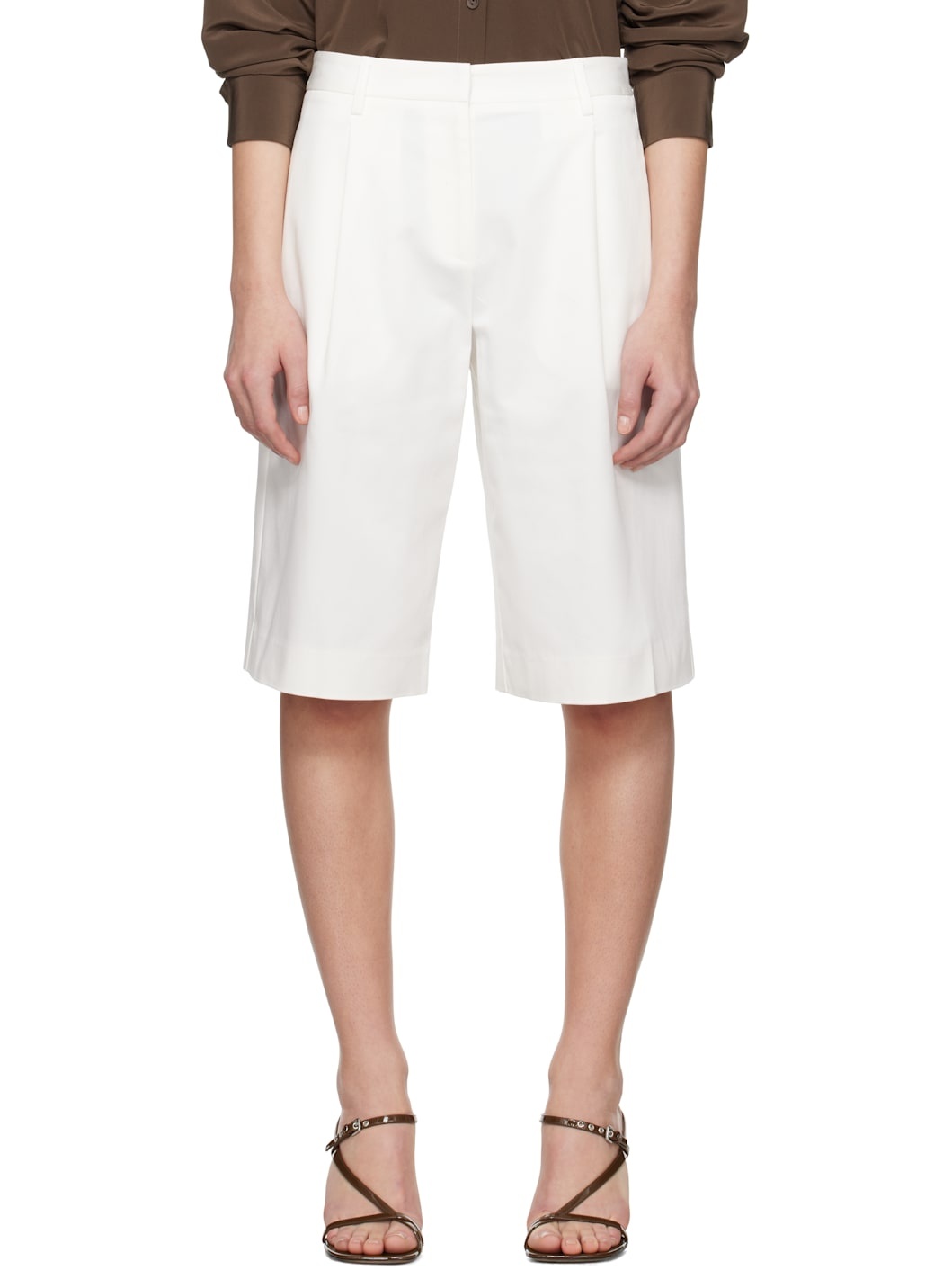 Stretch organic cotton twill shorts. · Wide straight-leg · Belt loops · Four-pocket styling · Zip fly · Pleats at front Supplier color: Chalk 97% cotton, 3% elastane. Made in Australia 252946F088004