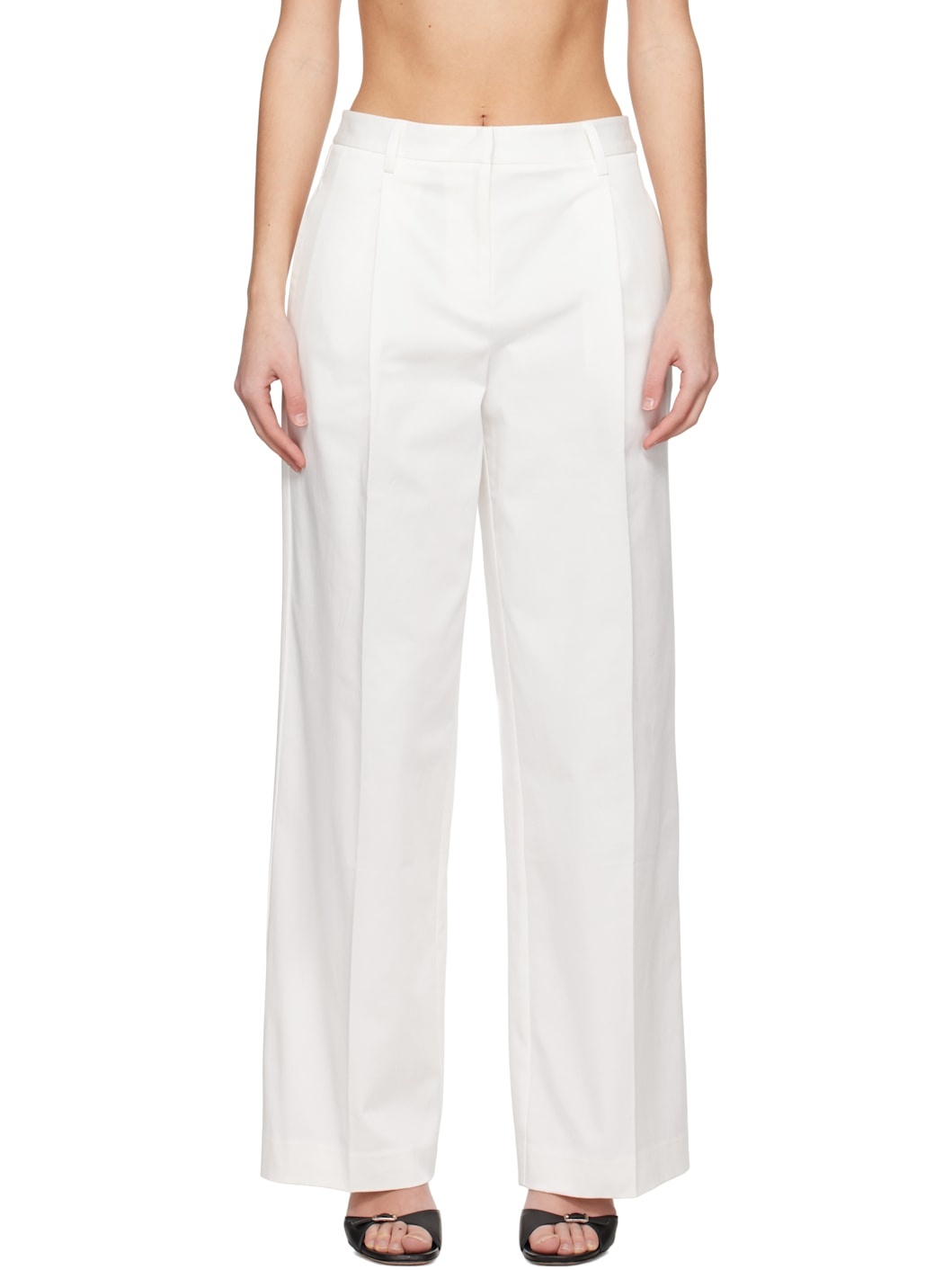 Straight-leg GOTS-certified organic cotton twill trousers. · Belt loops · Four-pocket styling · Zip-fly · Pleat at front legs Supplier color: Chalk 97% organic cotton, 3% elastane. Made in Australia 251946F087007