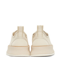 Low-top cotton canvas sneakers in beige. · Buffed leather trim throughout · Rubber cap toe · Lace-up closure · Logo patch at tongue · Pull-loop at heel collar · Piping at welt · Treaded rubber platform sole · Platform: H1.5" Part of the Max Mara The Cube collection. Supplier color: Ivory Upper: textile, leather. Sole: rubber. Made in Spain 241118F128002