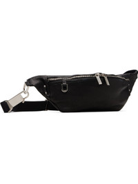 Buffed calfskin shoulder bag. · Press-stud tab at rolled shoulder straps · Detachable leather sheathed keys with logo plaque · Logo stamp at face · Padlock at side · Bumper pads at base · Zip closure · Patch pocket at goatskin suede interior · H5" x W11.5" x D5" Supplier color: Black Body: 100% calfskin. Lining: 100% goatskin. Made in Italy 252118F048001