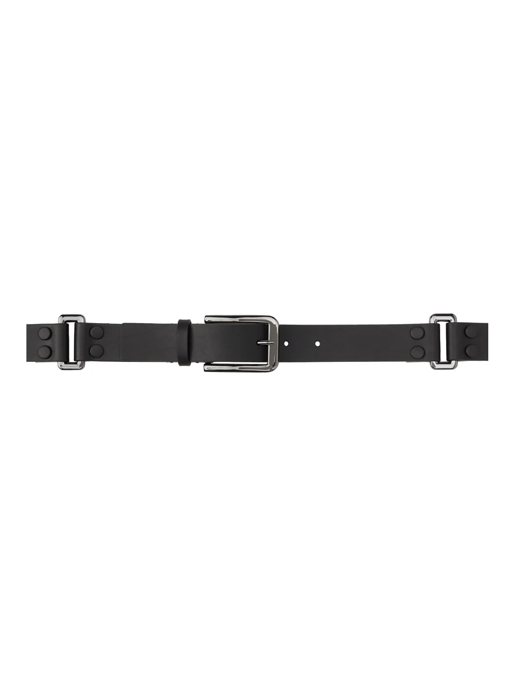 Buffed leather belt in black. · Adjustable pin-buckle fastening · D-ring and studs at length · Logo-engraved gunmetal-tone hardware Supplier color: Black Leather. Made in Italy 232118F001001