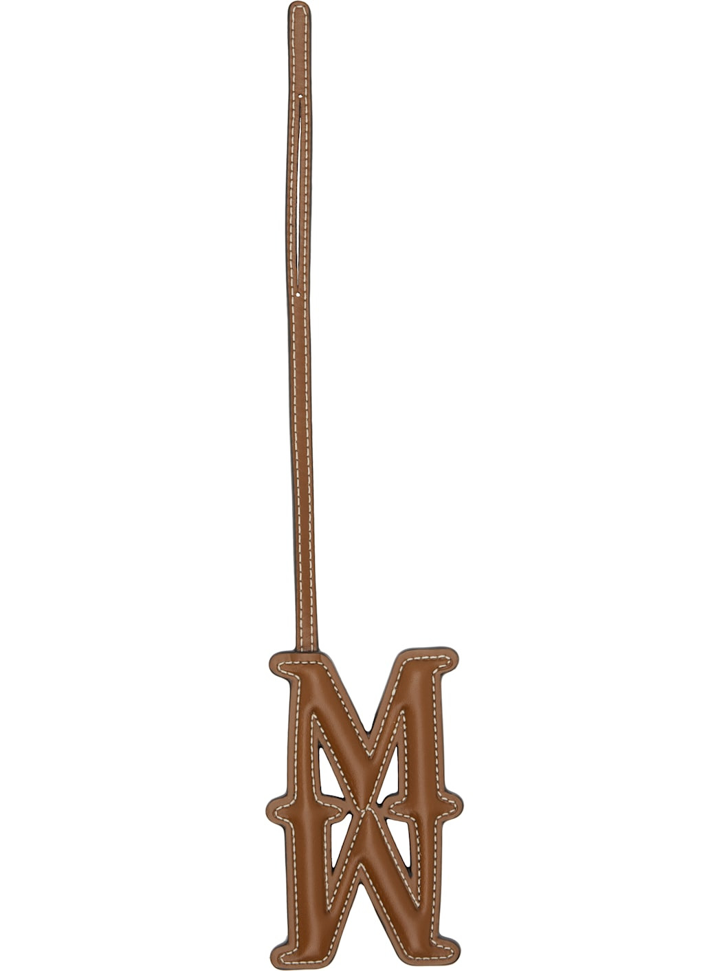 Grained calfskin keychain. · Pull-through fastening · Logo charm · Contrast stitching in off-white · H11.5" x W2.5" Supplier color: Amber brown Calfskin. Made in Italy 252118F025001