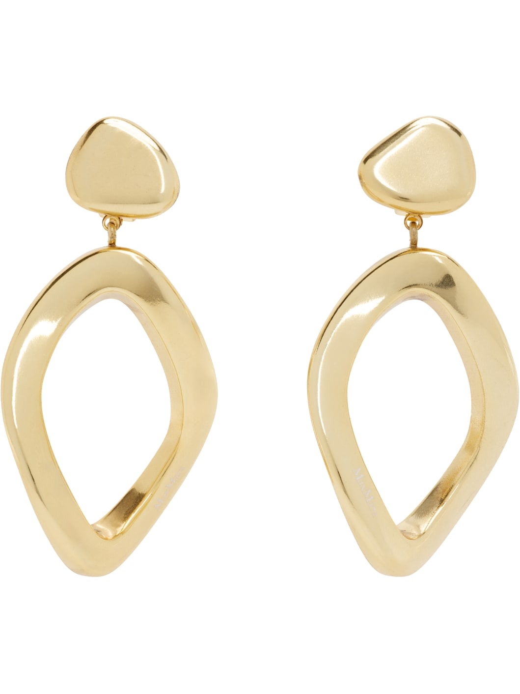 Pair of drop earrings in gold tone. · Logo-engraved hoop at drop · Clip-on fastening · H3.5" x W1.75" Supplier color: Gold Metal. Made in Morocco 251118F022000