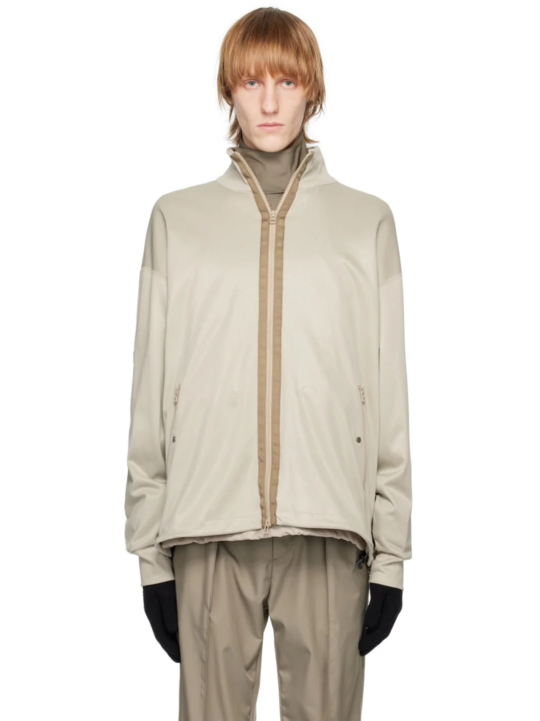 Cotton- and nylon-blend jersey jacket. · Mock neck · Two-way zip closure · Zip pockets · Concealed bungee-style drawstring at hem · Partial mesh lining Integrated stowaway polyester taffeta jacket. Taped seams throughout. · Breathable · Two-way zip closure · Zip pockets · Press-stud tabs at hem · Raglan sleeves · Adjustable velcro strap at cuffs Supplier color: Coyote