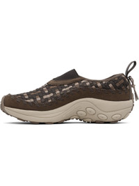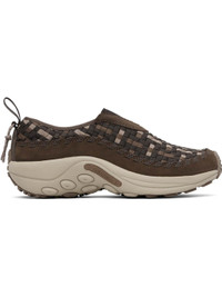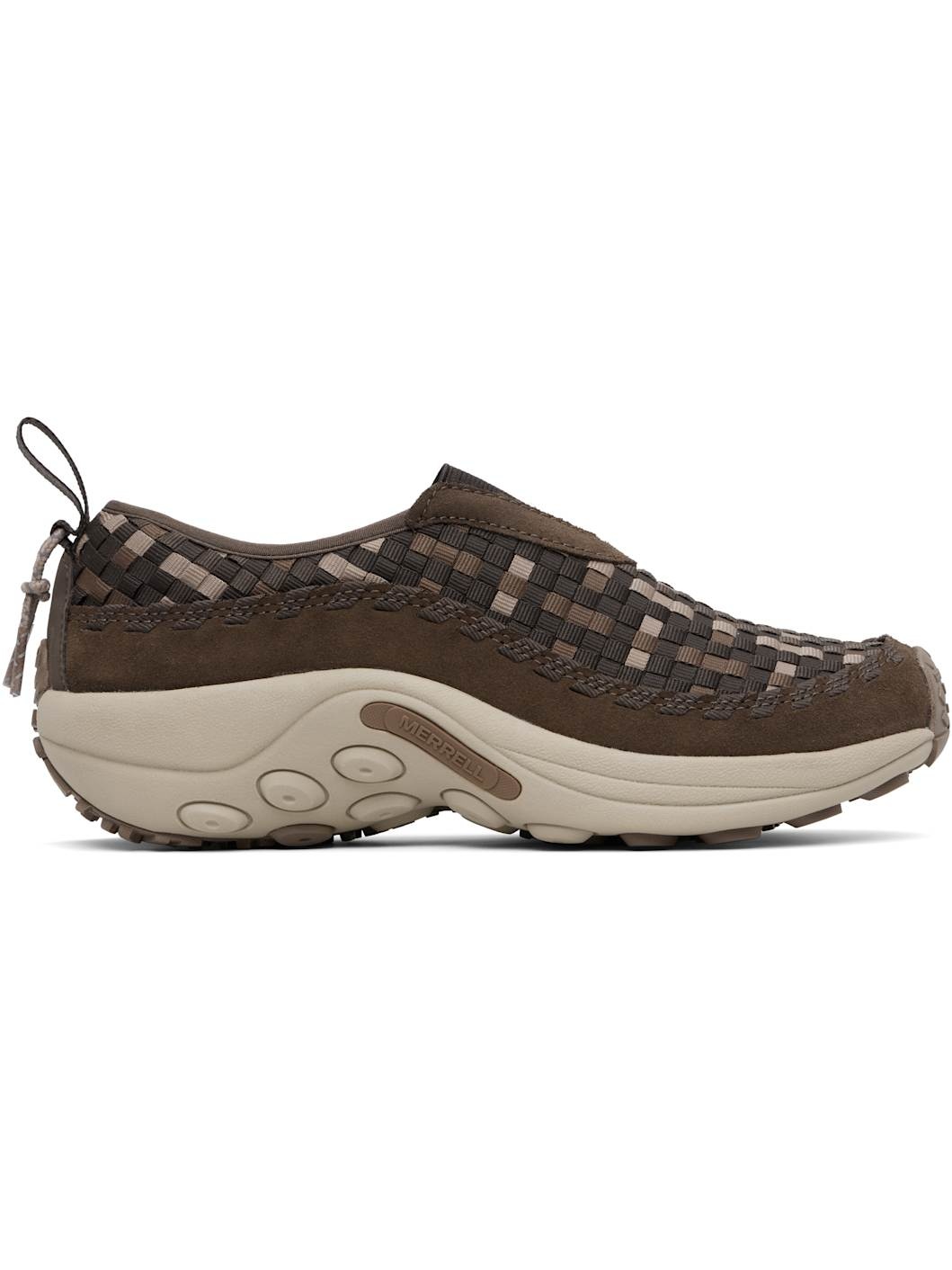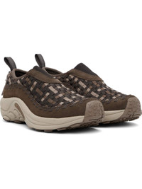 Low-top suede and basket-woven webbing slip-on sneakers in brown. · Cleansport NXT™-treated odor-control · Elasticized gusset at vamp · Padded collar · Logo embossed at outer side · Pull-loop and knotted detailing at heel counter · Mesh lining · Foam rubber midsole · Treaded rubber sole Supplier color: Mole Upper: leather, textile. Sole: rubber. Made in Cambodia 251607F128023