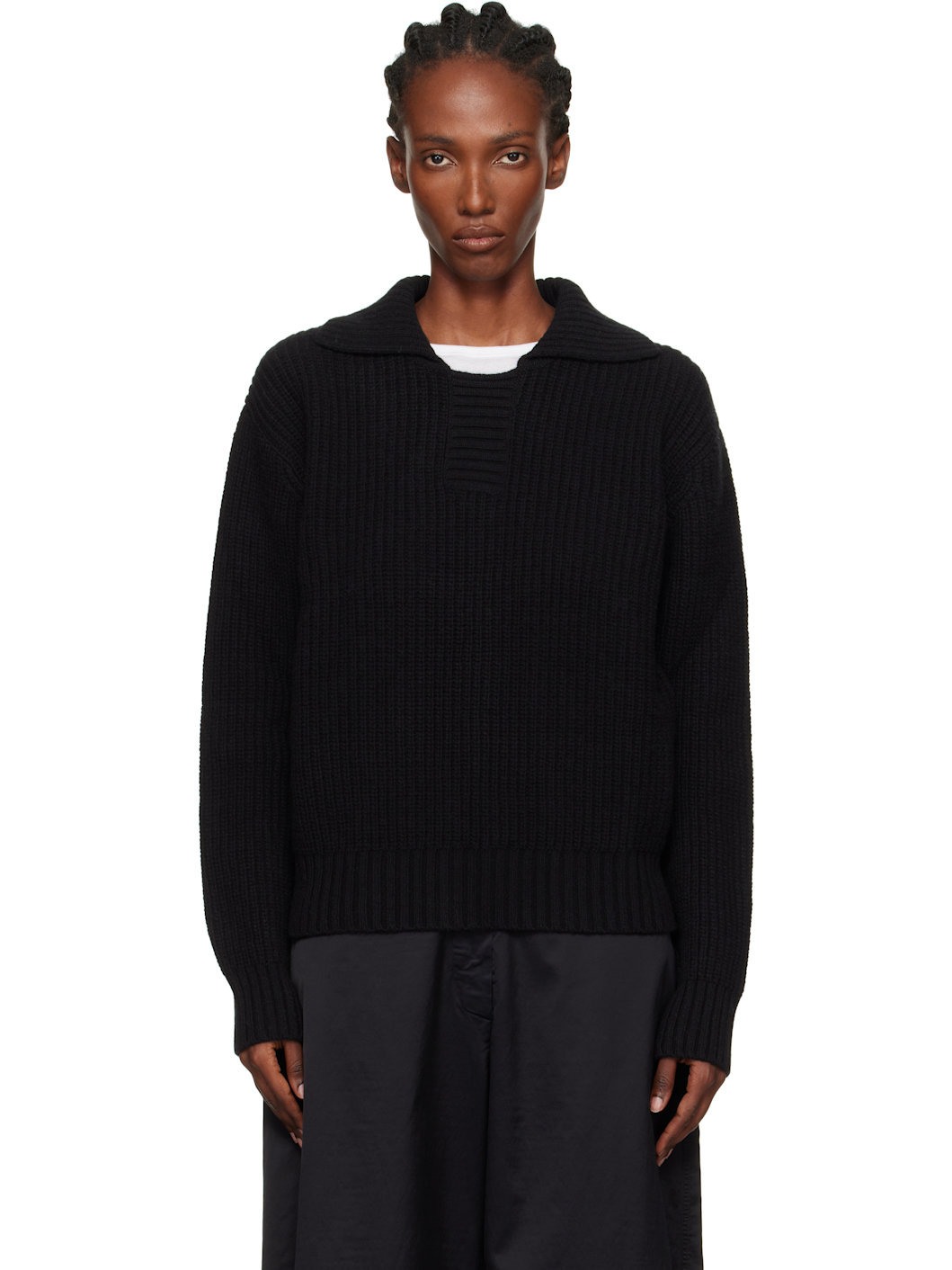 Rib-knit wool sweater. Spread collar. Supplier color: Black 100% wool. Made in Portugal 252505F096003