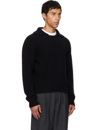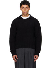 Rib-knit wool sweater. Spread collar. Supplier color: Black 100% wool. Made in Portugal 252505M212000