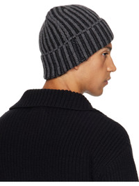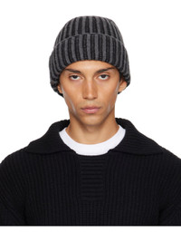 Knit wool beanie. · Knit stripes throughout · Rolled brim Supplier color: Grey 100% wool. Made in Portugal 252505M138001