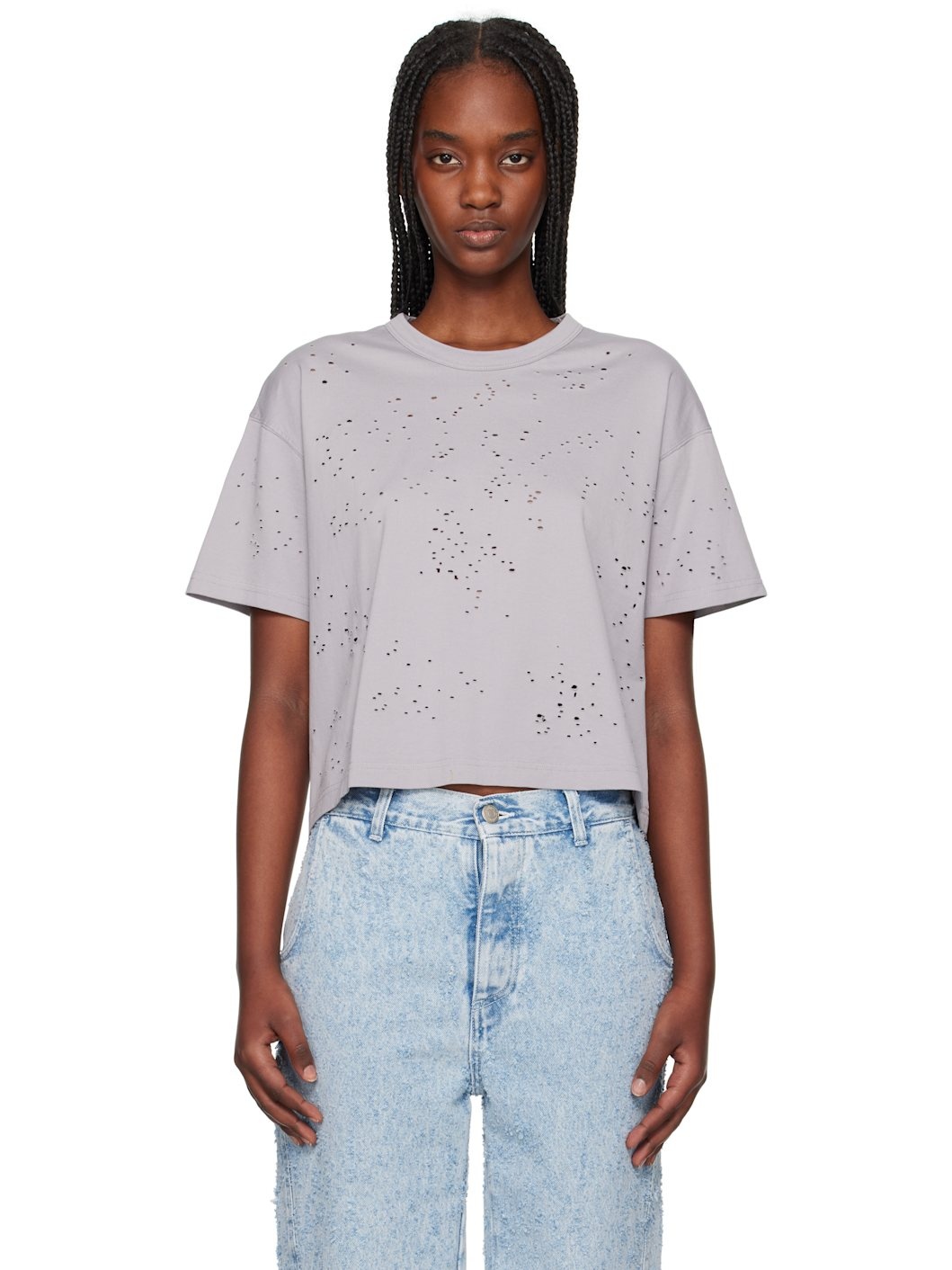 Cotton jersey T-shirt. Laser-cut distressing throughout. · Rib-knit crewneck · Cropped hem · Dropped shoulders Supplier color: Light grey 100% cotton. Made in Portugal 251505F110001