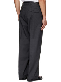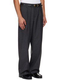Deadstock wool delaine trousers. · Raw edges throughout · Wide straight-leg · Mid-rise · Belt loops · Four-pocket styling · Zip fly · Pleats at front · Creased legs · Partial satin lining Supplier color: Grey worsted wool Body: 100% wool. Trim: 70% polyester, 30% cotton. Lining: 100% polyester. Made in Portugal 252505M191000