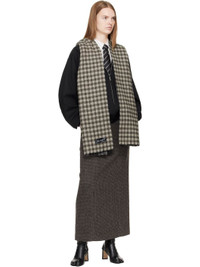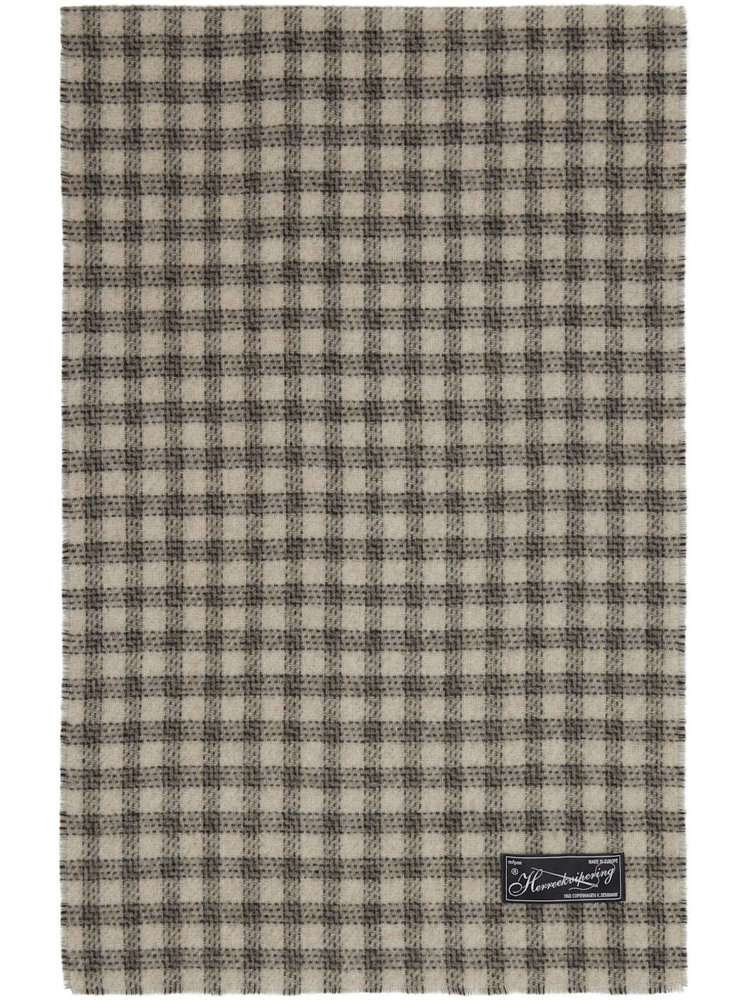 Rectangular double-faced knit wool-blend scarf. · Jacquard check pattern throughout · Logo patch at end · L81" x W15" Supplier color: Grey double faced check 70% wool, 30% polyamide. Made in Italy 252505F028001