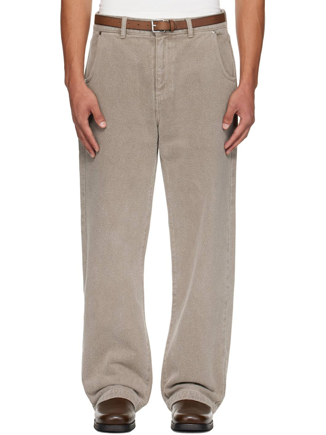 Brushed non-stretch organic cotton denim jeans. · Garment-washed and pre-shrunk · Loose-fit and straight-leg · Mid-rise · Fading throughout · Belt loops · Four-pocket styling · Zip fly Supplier color: Brushed mudstone 100% organic cotton. Made in Portugal 252505M186001