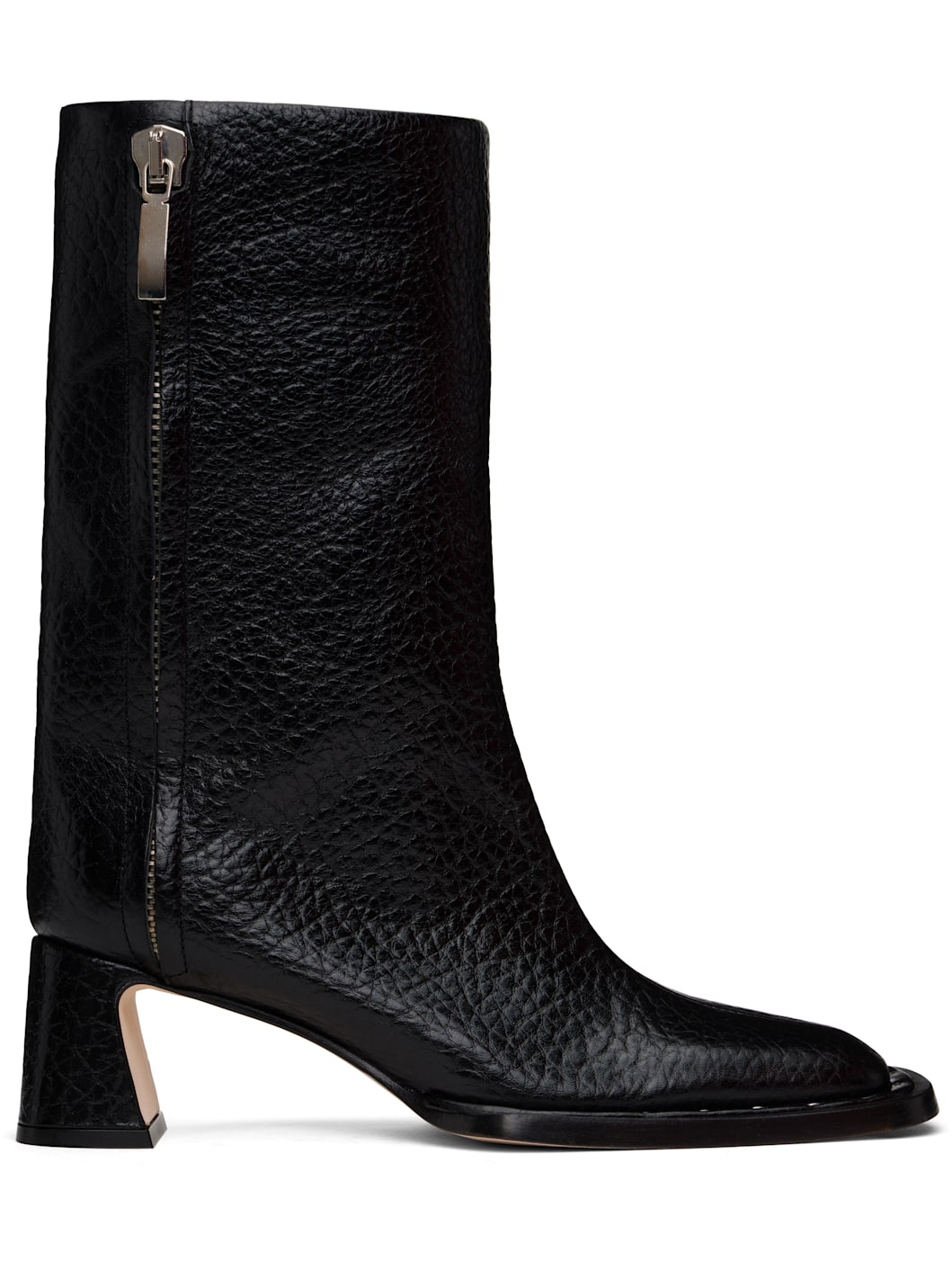 Mid-calf grained leather boots in black. · Square toe · Zip closure at inner side · Studs at welt · Covered block heel · Suede sole with rubber injection · Silver-tone hardware · Heel: H2.25" Supplier color: Black grain Upper: leather. Sole: leather, rubber. Made in Spain 242877F114029