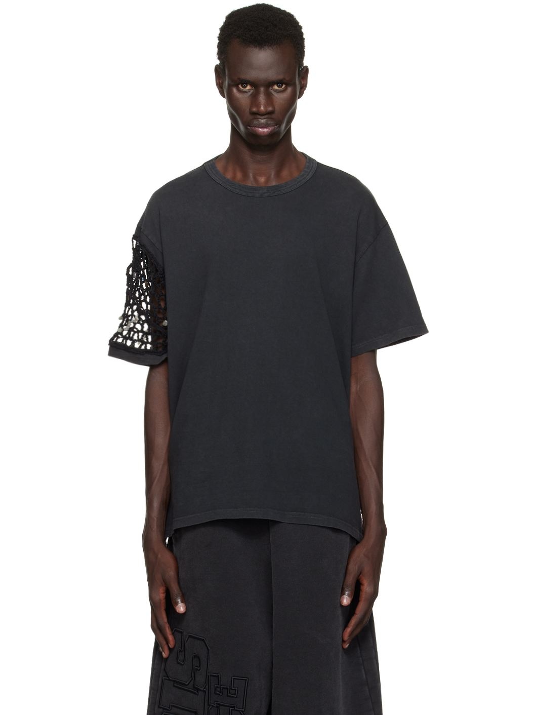 Cotton jersey T-shirt. Hand-crocheted panel with stone accents at sleeve and back. · Rib knit crewneck · Dropped shoulders · Logo hardware at back Supplier color: Black 100% cotton. Made in Poland 242937M213000