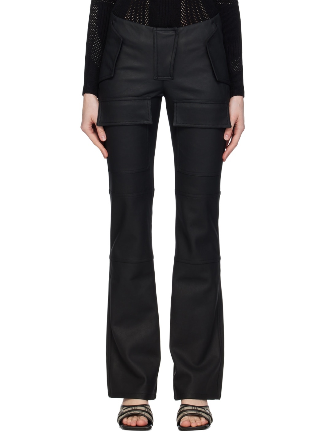 Bootcut grained faux-leather trousers. · Low-rise · Four-pocket styling · Zip-fly · Flap pockets at front · Faux-suede lining Supplier color: Faded black 57% polyurethane, 43% polyester. Made in Poland 241937F087022