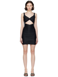 Stretch nylon jersey dress. Ruching throughout. · Knotted detailing at sweetheart neck · Cutout at front · Unlined Supplier color: Black 75% polyamide, 25% elastane. Made in Poland 241937F052010