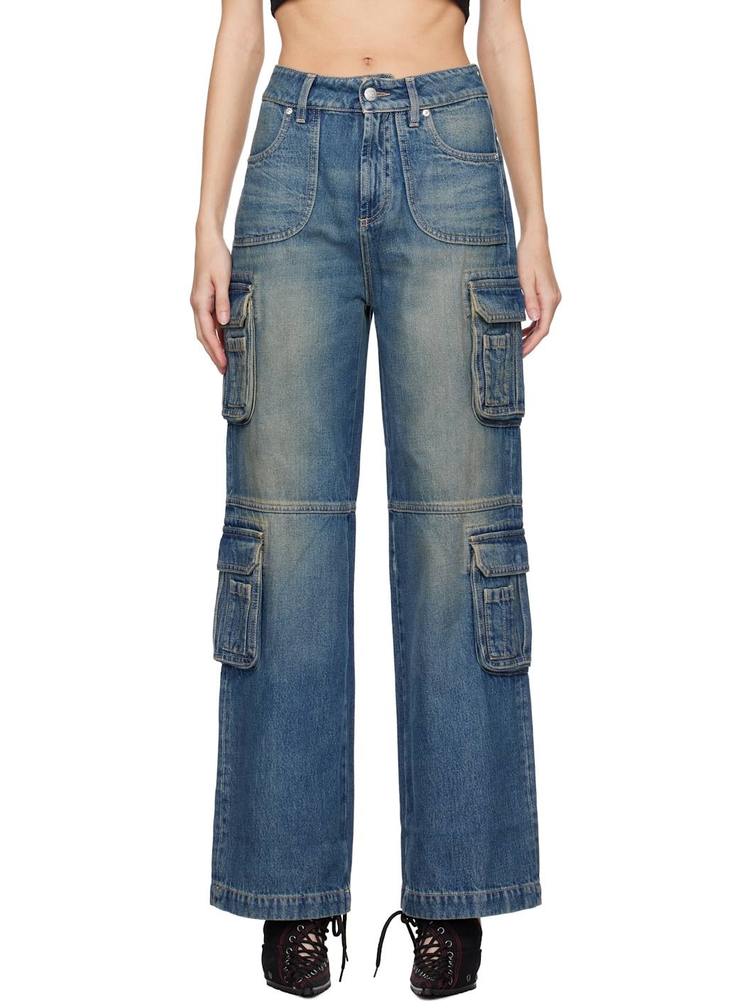 Loose-fit non-stretch denim jeans. Fading and whiskering throughout. · Belt loops · Four-pocket styling · Zip-fly · Cargo pockets at outseams · Logo-engraved silver-tone hardware Supplier color: Malibu blue 100% cotton. Made in Italy 242937F069009
