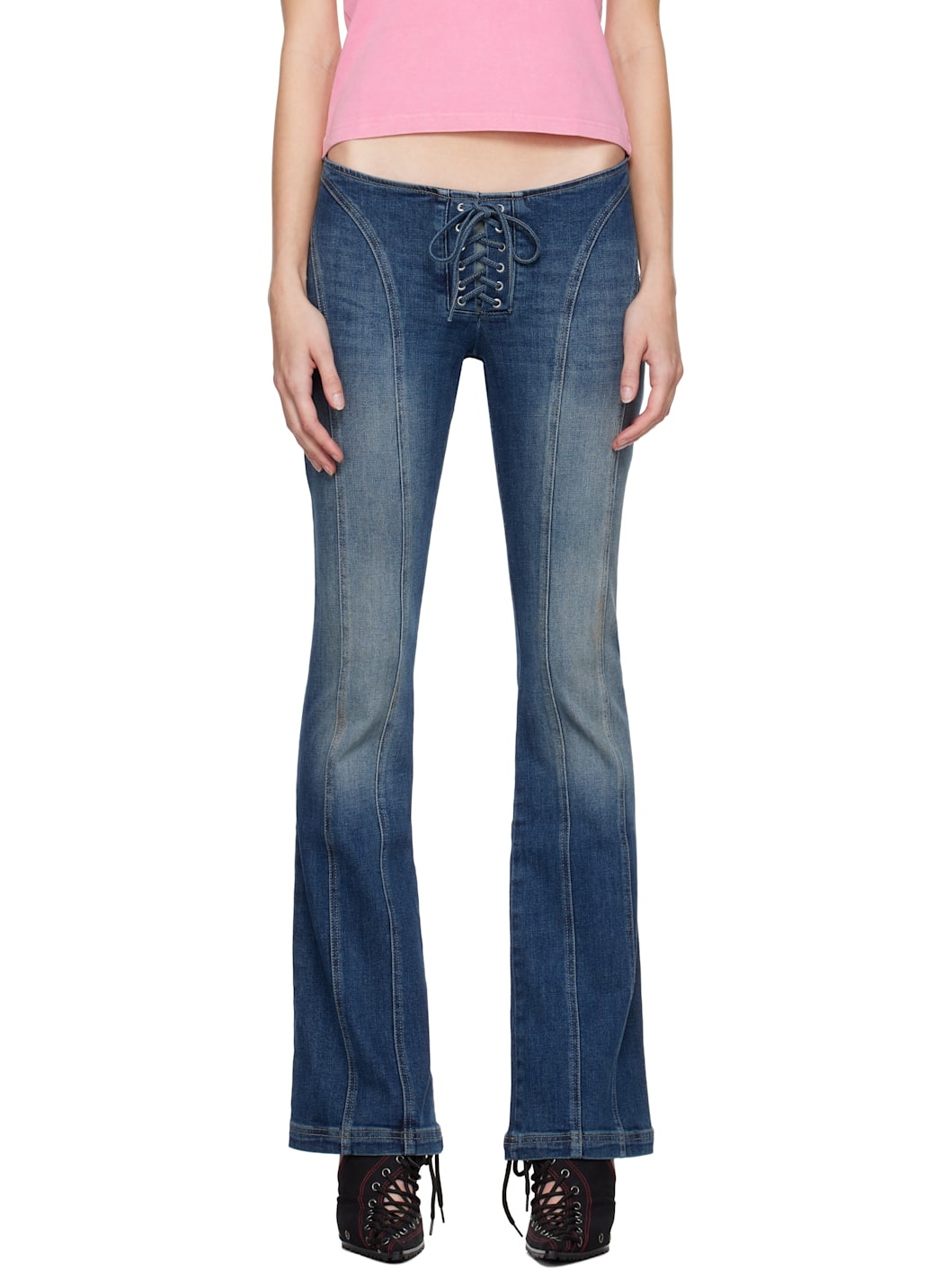 Paneled stretch cotton- and recycled cotton-blend denim jeans. Fading and whiskering throughout. · Low-rise · Lace-up detailing at front · Zip closure and logo plaque at back · Contrast stitching in tan Supplier color: Malibu blue 78% cotton, 20% recycled cotton, 2% elastane. Made in Turkey 242937F069008