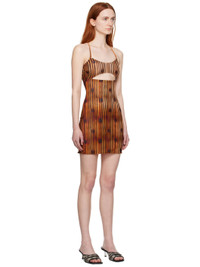 Semi-sheer stretch nylon mesh dress. Stripe pattern and graphic pattern printed throughout. · Square neck · Cutout at front and back · Adjustable criss-crossing spaghetti shoulder straps · Flip-clasp fastening at back · Concealed zip closure at back · Fully lined Supplier color: Multicolor 93% polyamide, 7% elastane. Made in Poland 231937F052010