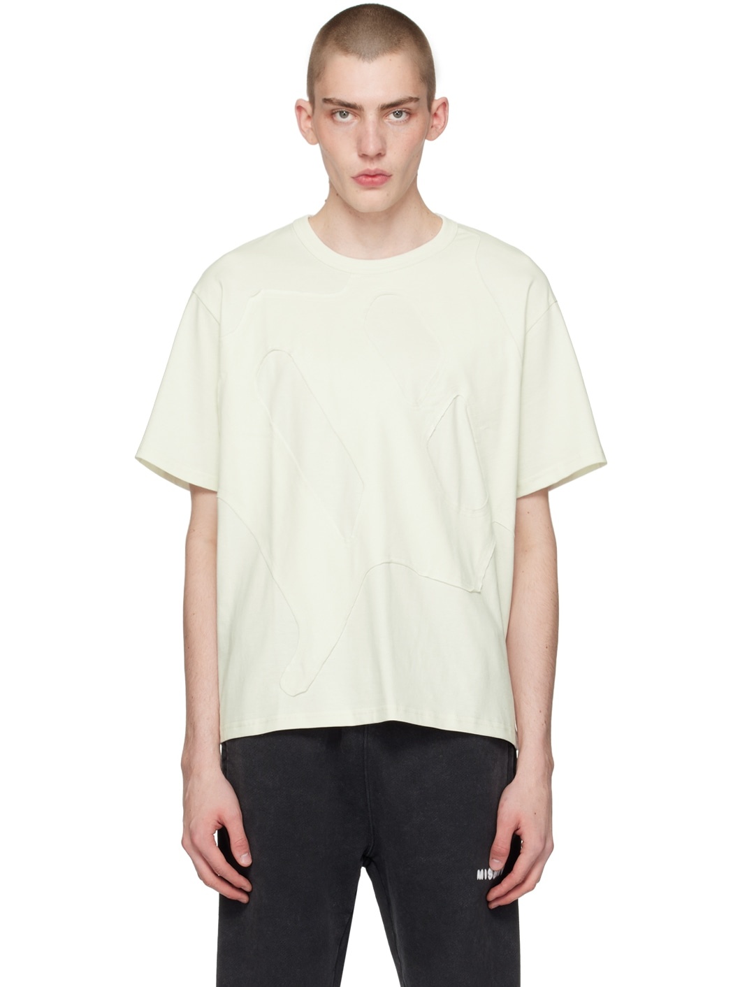 Heavyweight cotton jersey T-shirt. · Rib knit crewneck · Logo applique and raw edges at front Supplier color: Coconut 100% cotton. Made in Poland 241937M213008