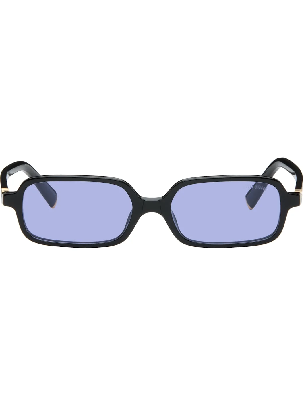 Rectangular acetate-frame sunglasses. · Blue tinted lenses · Etched logo at lens · Integrated nose pads · Logo hardware at hinges · Hardware at tips · Hinged velour case included · Size: 51.16 140 Supplier color: Black/Violet Acetate. Made in Italy 252209F005003