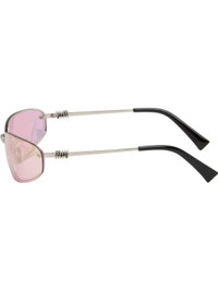 Oval cat-eye-style metal-frame sunglasses. · Mirrored pink lenses · Adjustable rubber nose pads · Logo hardware at temples · Transparent acetate temple tips · Includes case · Size: 69.15 130 Supplier color: Silver/Pink mirror lilac Metal. Made in Italy 261209F005045