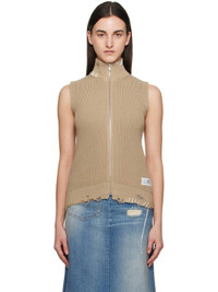 Beige Eaten Knit Logo Zip Up Vest