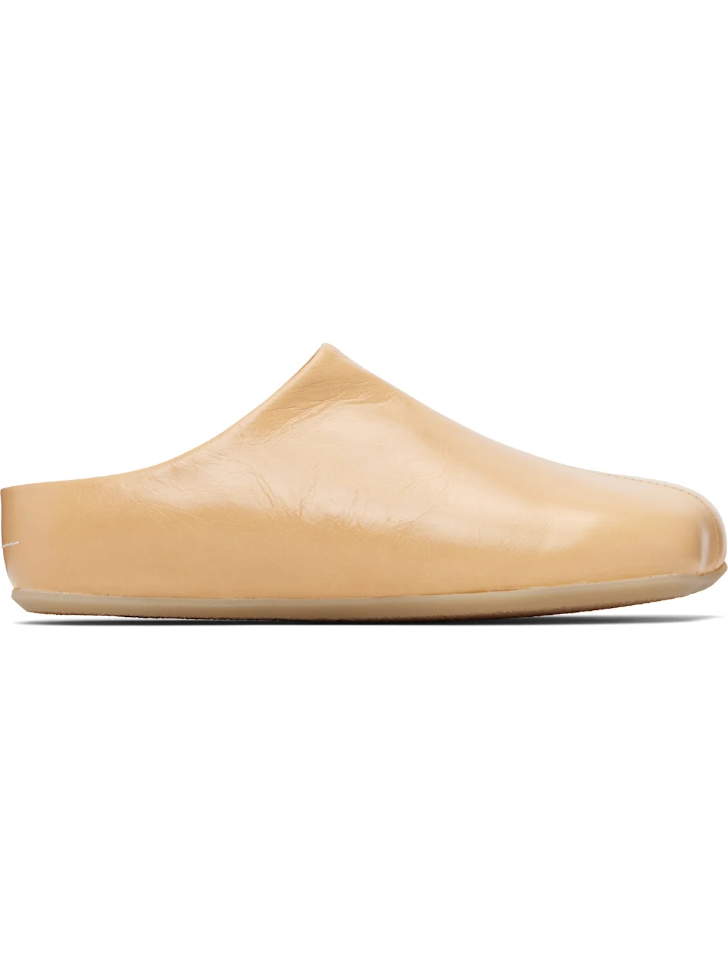 Creased calfskin slip-on loafers. · Modified square toe · White stitching at heel collar · Buffed calfskin lining · Crepe rubber sole Supplier color: Almond Upper: calfskin. Sole: rubber. Made in Italy 261188F121002