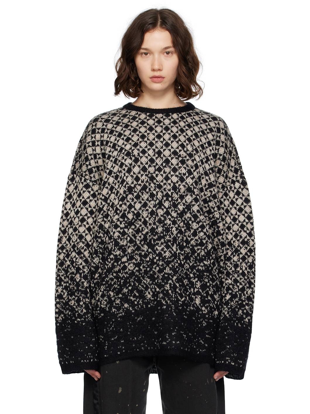 Knit wool- and mohair-blend sweater. · Jacquard pattern throughout · Rib-knit crewneck, hem, and cuffs · Dropped shoulders · White stitching at back collar Supplier color: Black/Beige 78% wool, 11% polyamide, 11% mohair. Made in Italy 252188F096000