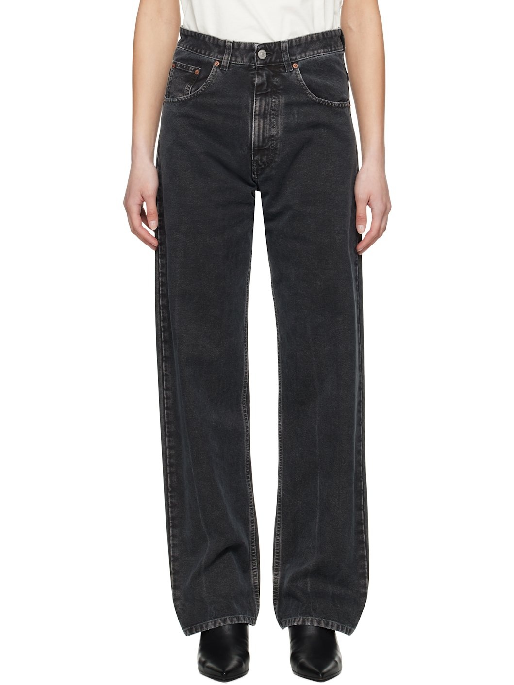 Cotton canvas jeans. Fading and subtle distressing throughout. · Belt loops · Five-pocket styling · Zip fly · Jacron logo patch at back waistband · White stitching at back · Logo-engraved bronze- and silver-tone hardware Supplier color: Black 100% cotton. Made in Italy 251188F069014
