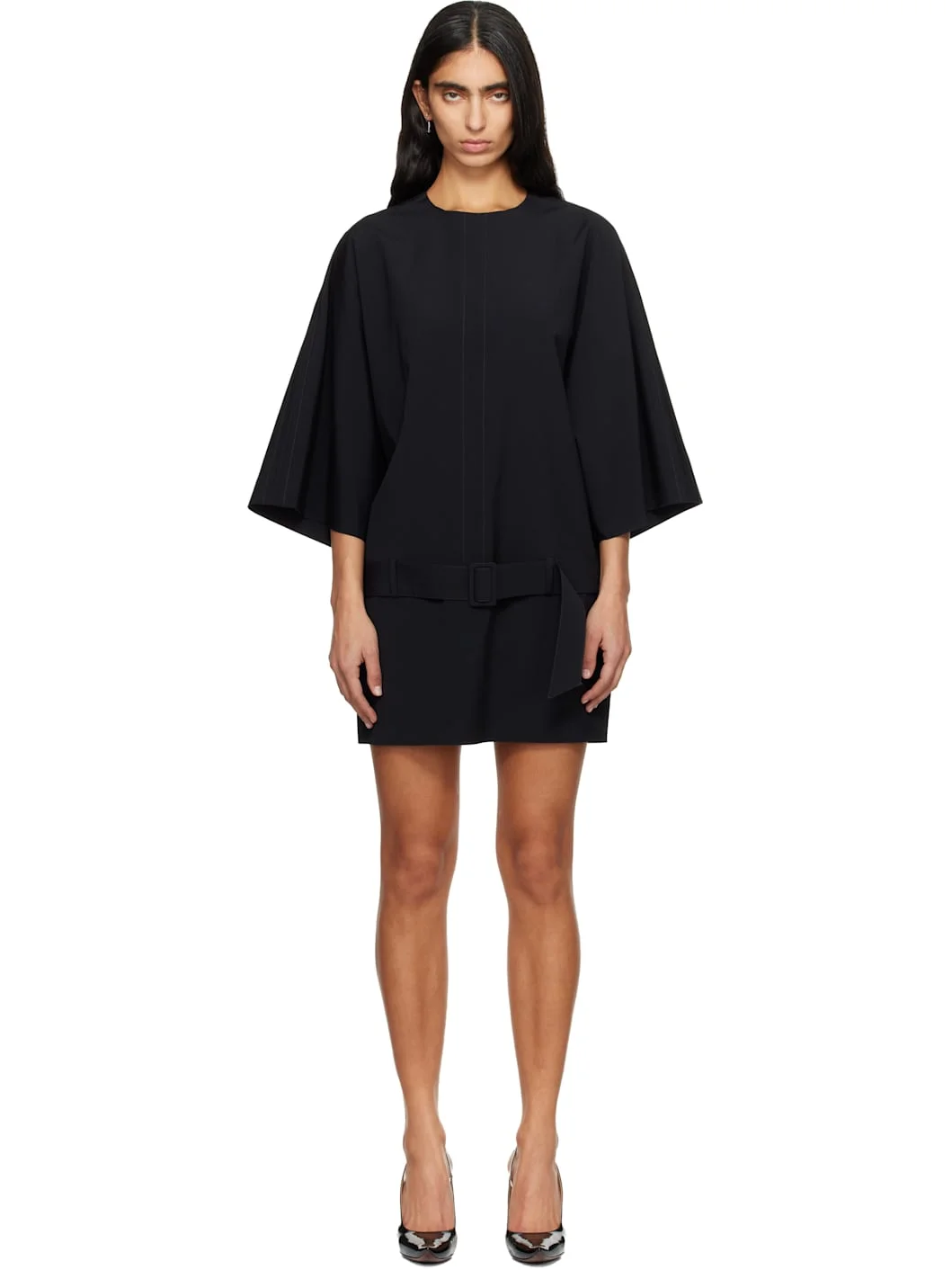 Stretch virgin wool- and cotton-blend crepe minidress. · Round neck · Belt loops and detachable cinch belt at hips · Dolman sleeves · White stitching at back shoulder · Concealed zip closure at back · Contrast stitching in off-white Supplier color: Black Body: 67% virgin wool, 30% cotton, 3% elastane. Lining: 100% viscose. Made in Italy 252188F052022