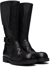 Knee-high buffed leather boots. · Topstitching and quilted padding throughout · Velcro fastening at sides · Velcro tab at outer side · Concealed zip closure at inner side · White stitching at heel collar · Buffed leather lining · Treaded rubber sole Supplier color: Black Upper: leather. Sole: rubber. Made in Italy 252188F114000