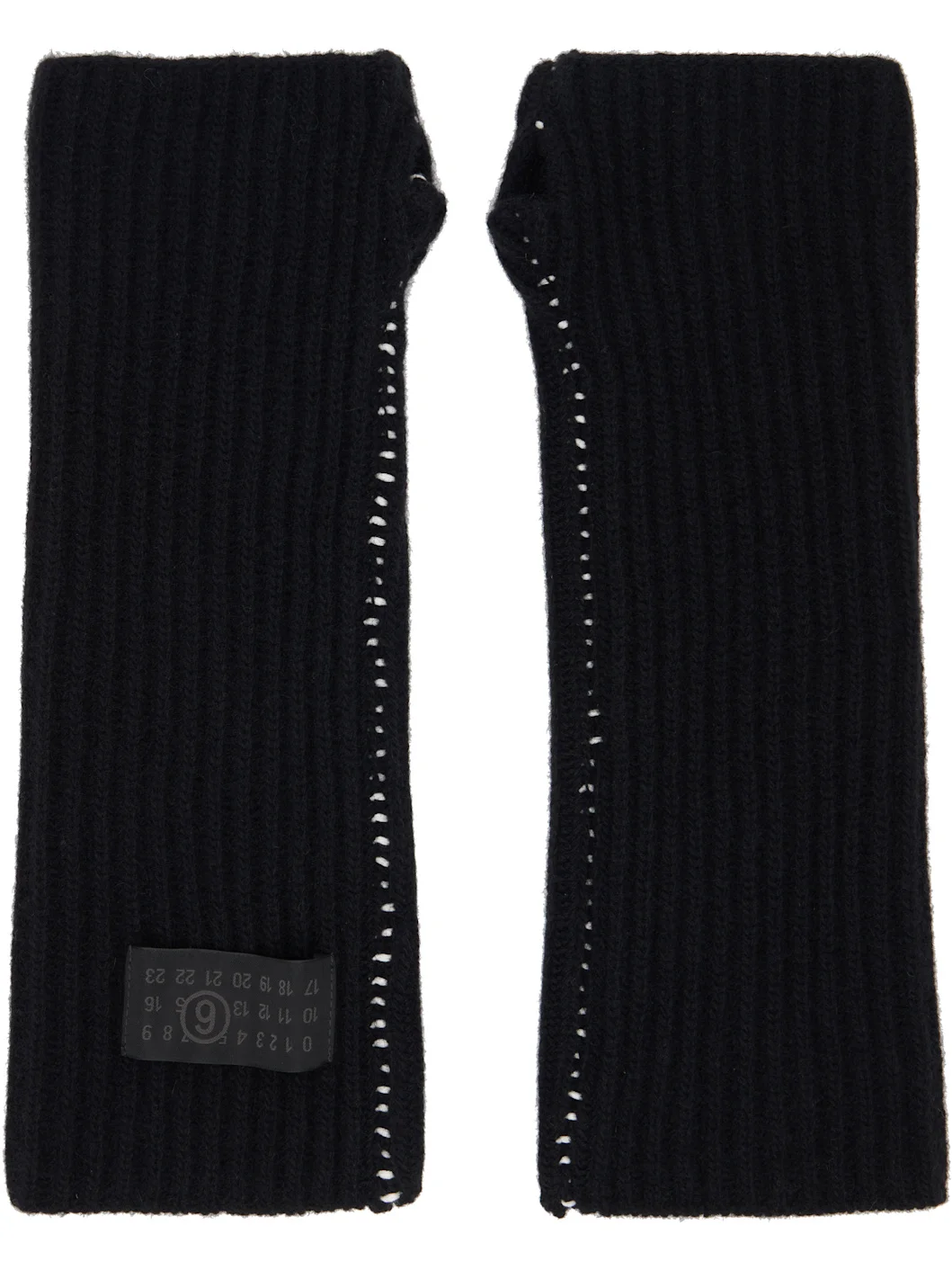 Pair of elbow-length rib-knit wool-blend arm warmers. · Thumb opening at top · Logo patch at single cuff · White stitching at inner sides Supplier color: Black 80% wool, 20% polyester. Made in Italy 261188F012005