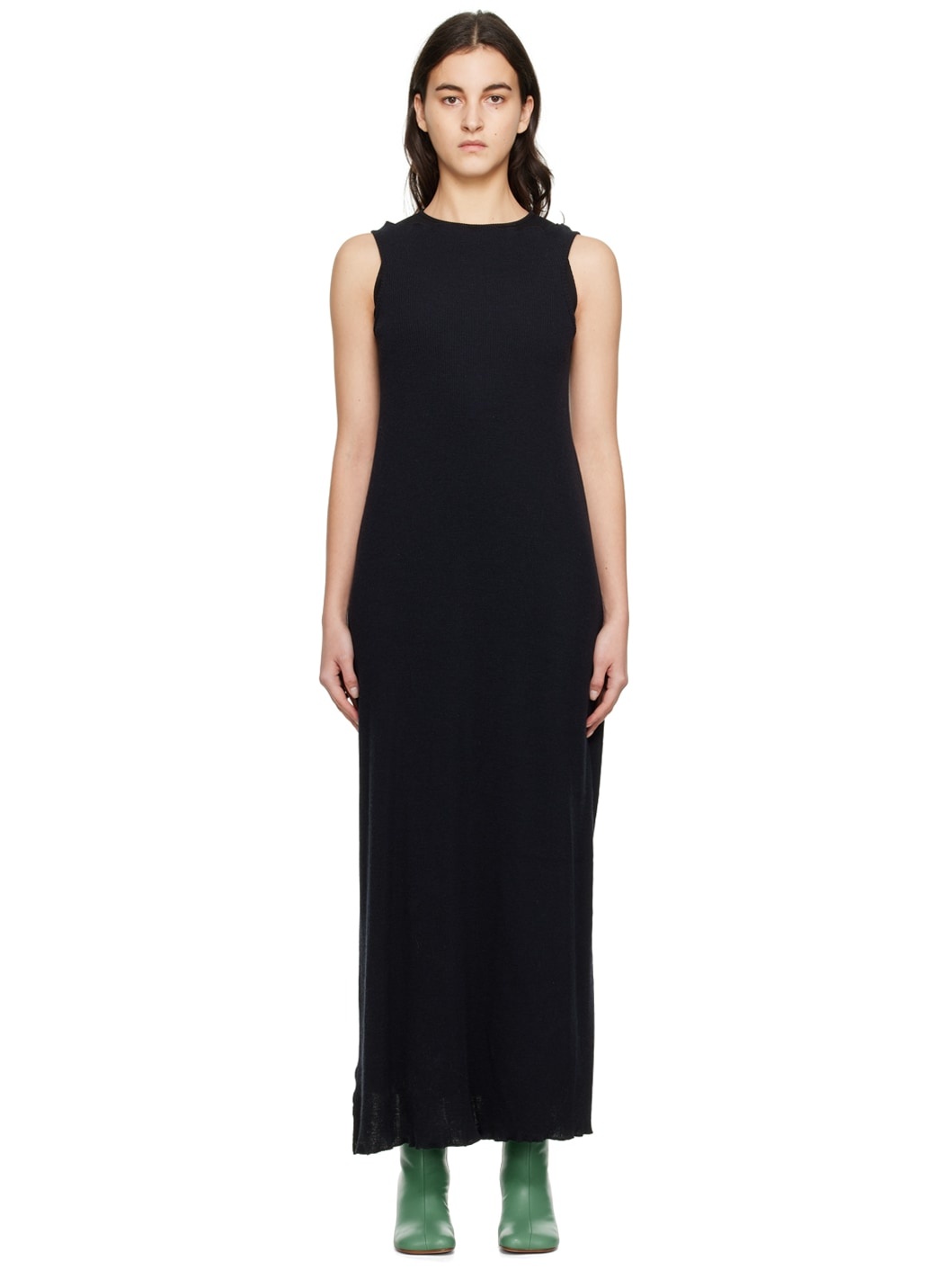Rib knit wool-blend dress. · Layered construction · Crewneck · Rib knit stretch cotton overlay with press-stud fastening · Lettuce edge at hem · White stitching at back Supplier color: Black