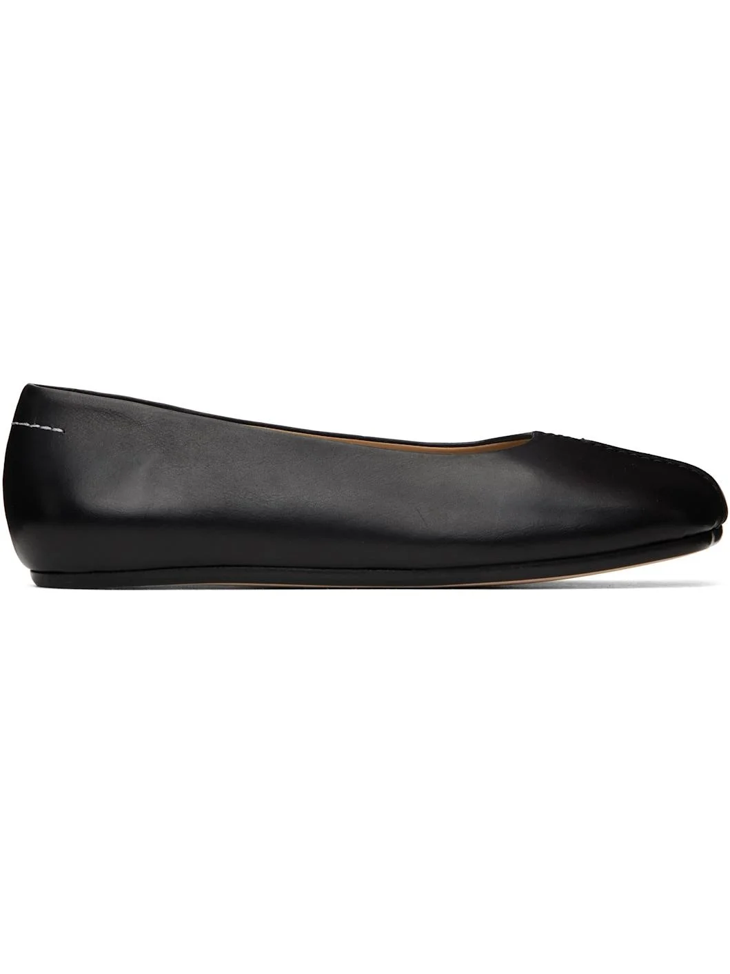 Vegetable-tanned grained calfskin ballerina flats in black. · Modified square toe · Signature white stitching at heel tab · Logo embossed at padded footbed · Grained calfskin and suede lining · Suede sole with rubber injection Supplier color: Black Upper: calfskin. Sole: calfskin, rubber. Made in Italy 251188F118002