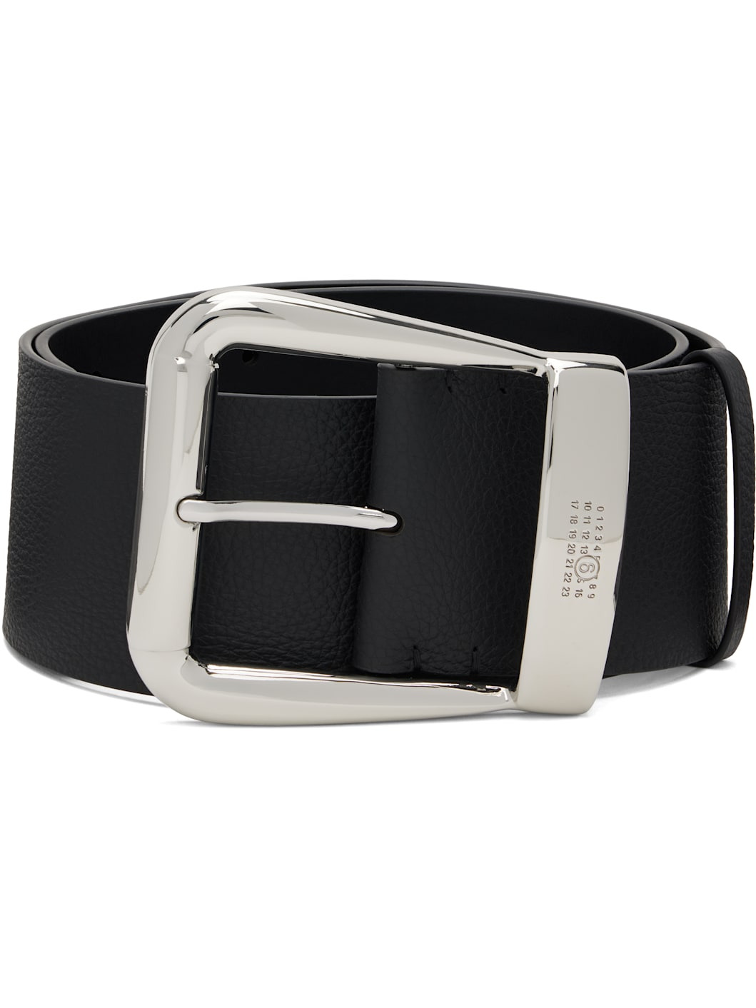 Pebble-grained calfskin belt. · Keeper loop at length · Logo-engraved pin-buckle fastening · Silver-tone hardware · W1.5" Supplier color: Black Calfskin. Made in Italy 252188F001002