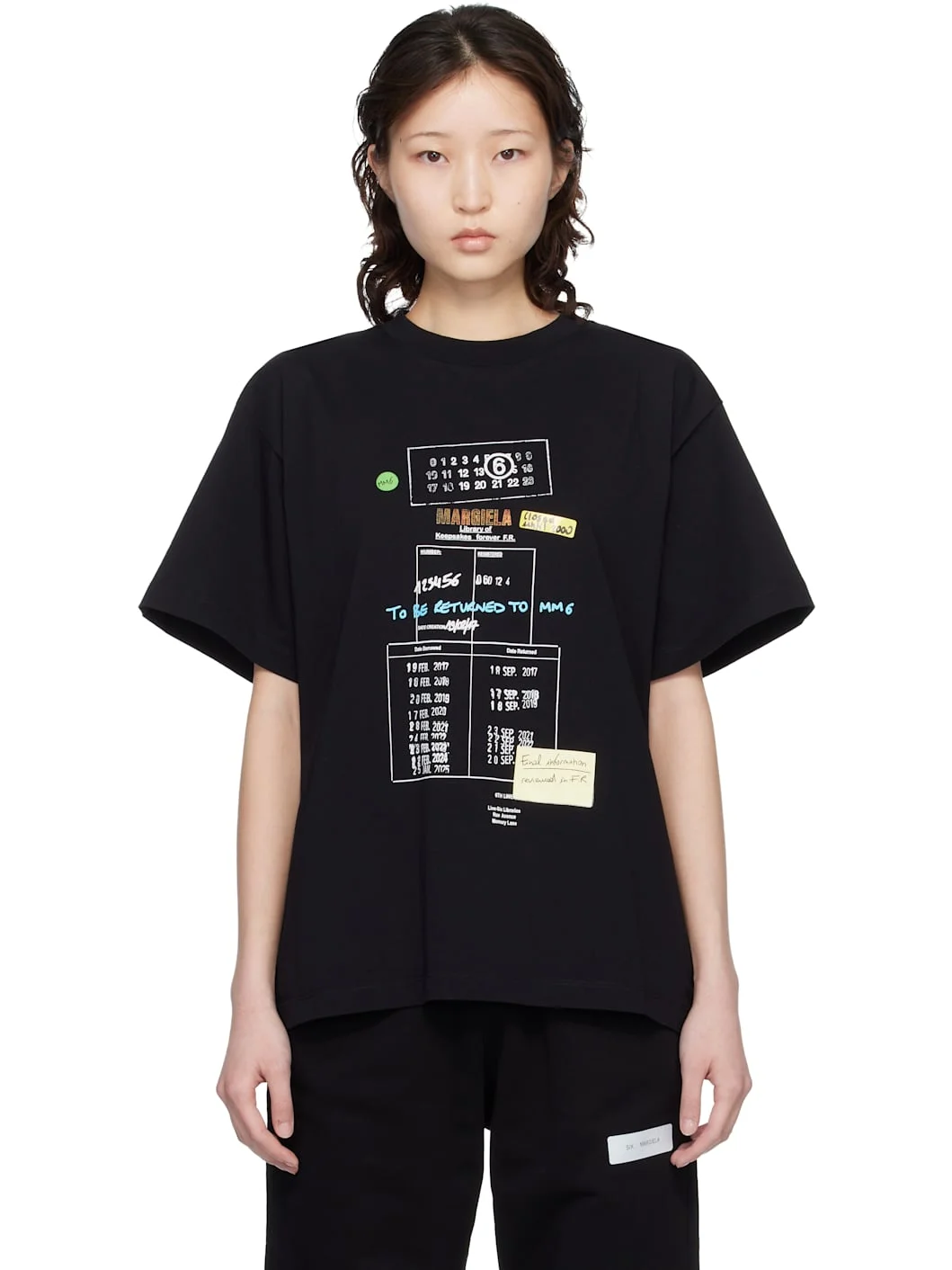 Cotton jersey T-shirt. · Rib-knit crewneck · Logo, graphic, and text printed at front · Dropped shoulders · White stitching at back collar Supplier color: Black 100% cotton. Made in Portugal 261188F110023