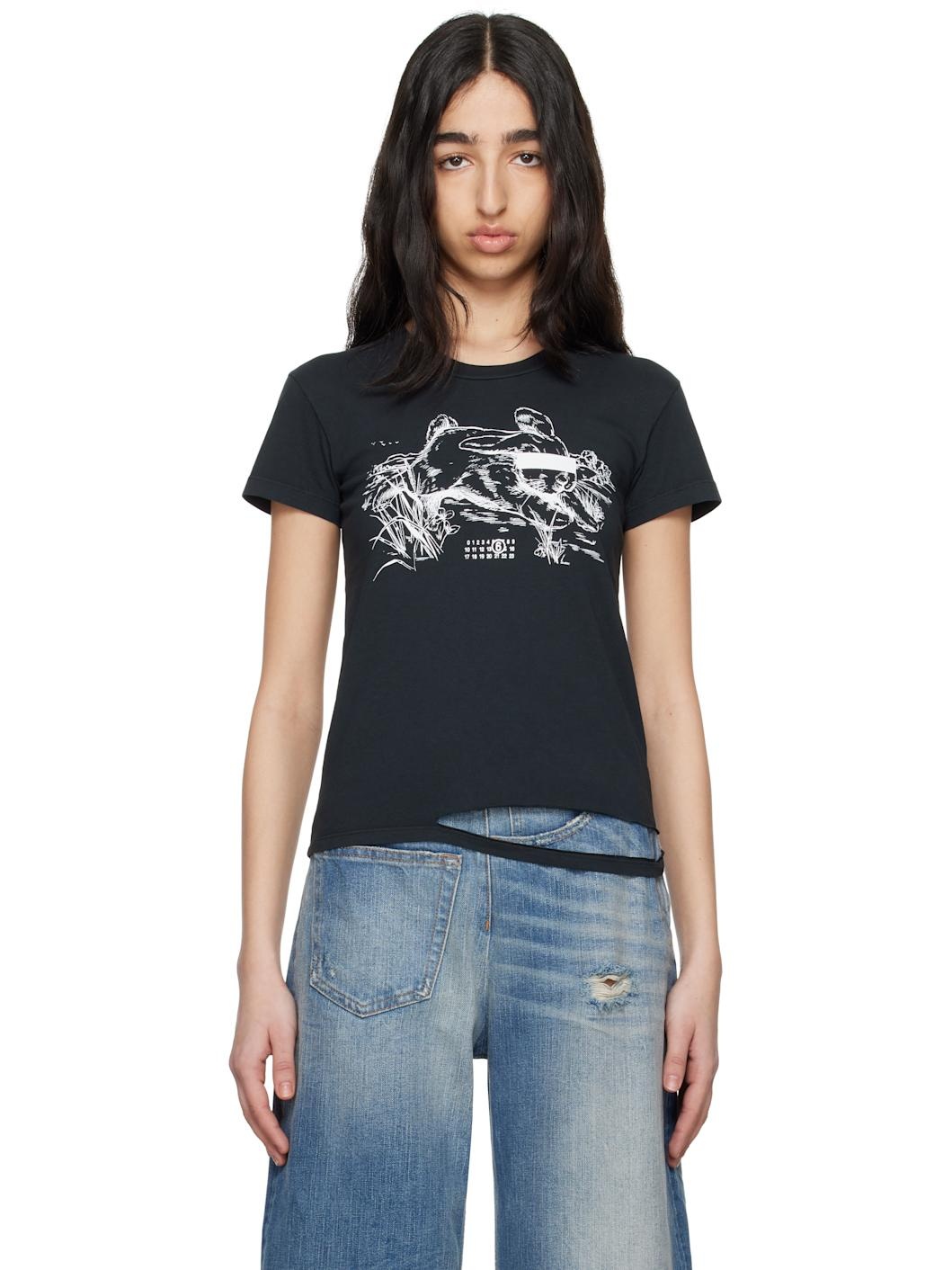 Black Rabbit Print T-shirt