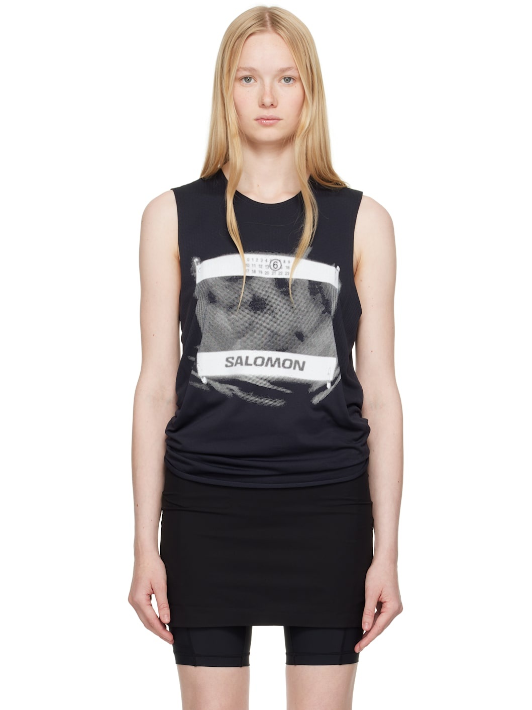 Textured nylon jersey sport top. · Seamless construction · Crewneck · Graphic printed at front · Rolled edge at hem · White stitching and printed logos at back collar Part of the MM6 Maison Margiela x Salomon collaboration. Supplier color: Black 100% polyamide. Made in Turkey 252188F561000