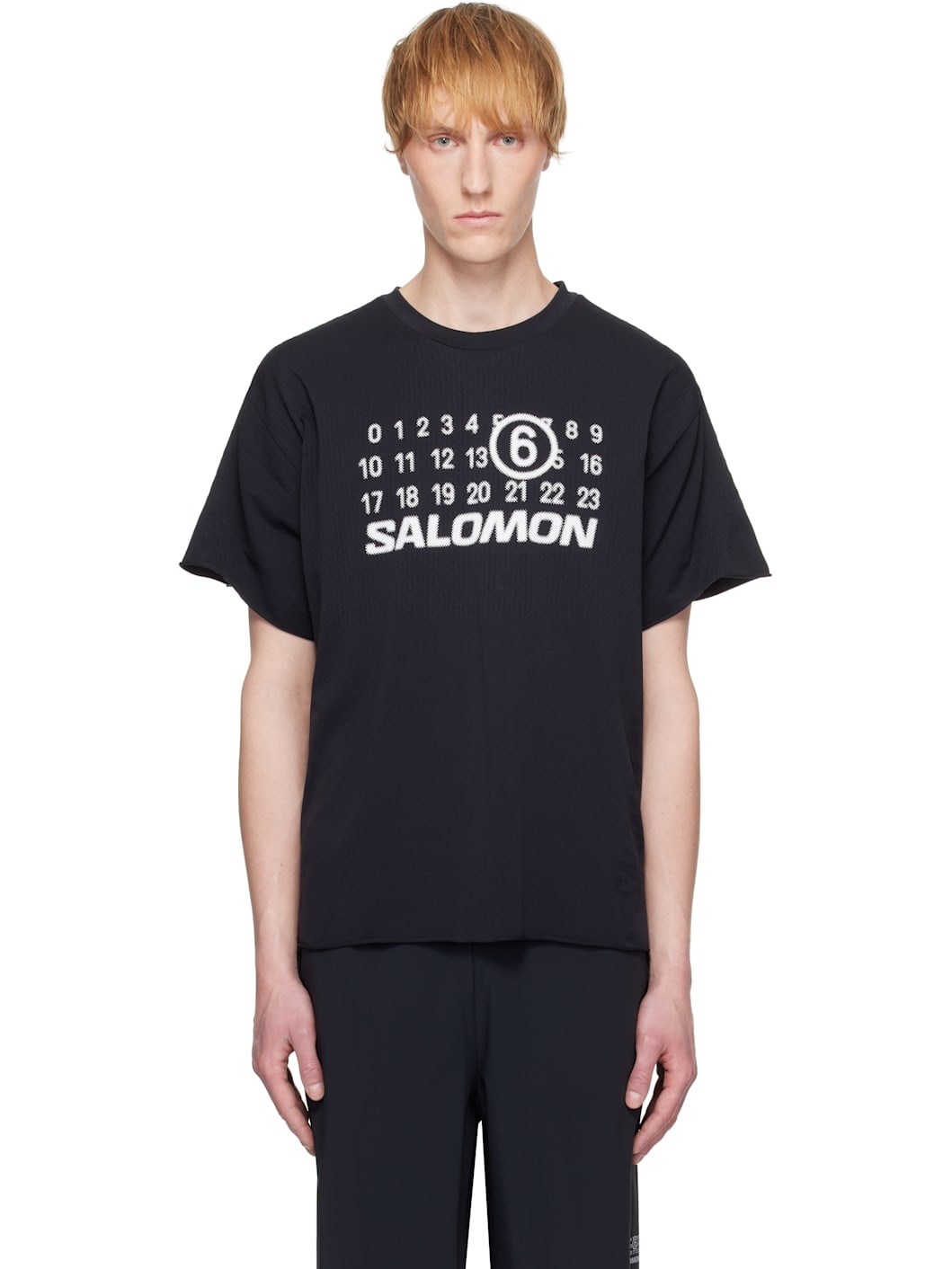 Textured nylon jersey T-shirt. · Seamless construction · Rib-knit crewneck · Logos printed at front and back · Rolled edge at hem and cuffs · Dropped shoulders · White stitching at back collar Part of the MM6 Maison Margiela x Salomon collaboration. Supplier color: Black 100% nylon. Made in Turkey 252188M213001