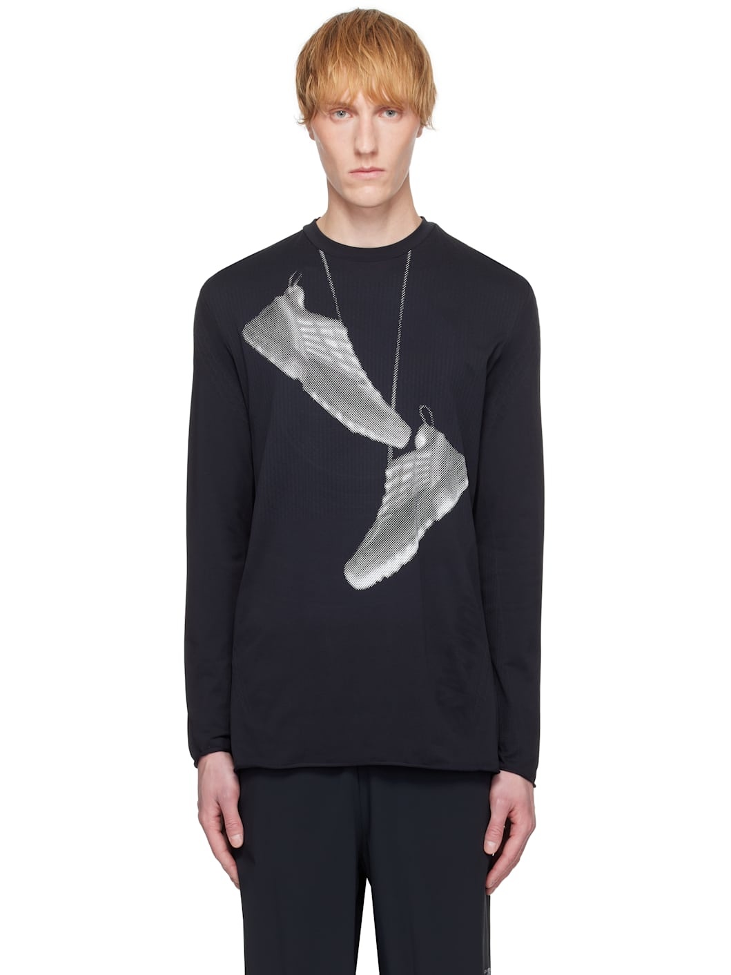 Textured nylon jersey T-shirt. · Seamless construction · Rib-knit crewneck · Graphic printed at front · Rolled edge at hem and cuffs · White stitching and printed logos at back collar Part of the MM6 Maison Margiela x Salomon collaboration. Supplier color: Black 100% nylon. Made in Turkey 252188M213000