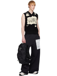 Nylon ripstop backpack in black. · Webbing loops and daisy chains throughout · Webbing carry handle · Adjustable padded shoulder straps · Zip pockets and bonded logo at shoulder straps · Adjustable sternum straps · Zip pockets at press-release waist belt · Zip pocket at top · Logo bonded at face · Crisscrossing bungee-style drawstring at face · Padded honeycomb mesh back face · Two-way zip closure · Patch pocket at interior · 500 mL soft flask compatible · 2L reservoir compatible · H19.5" x W10.5" x D5.5" / 20 L Part of the MM6 Maison Margiela x Salomon collaboration. Supplier color: Black/Black Textile. Made in Viet Nam 252188M166000